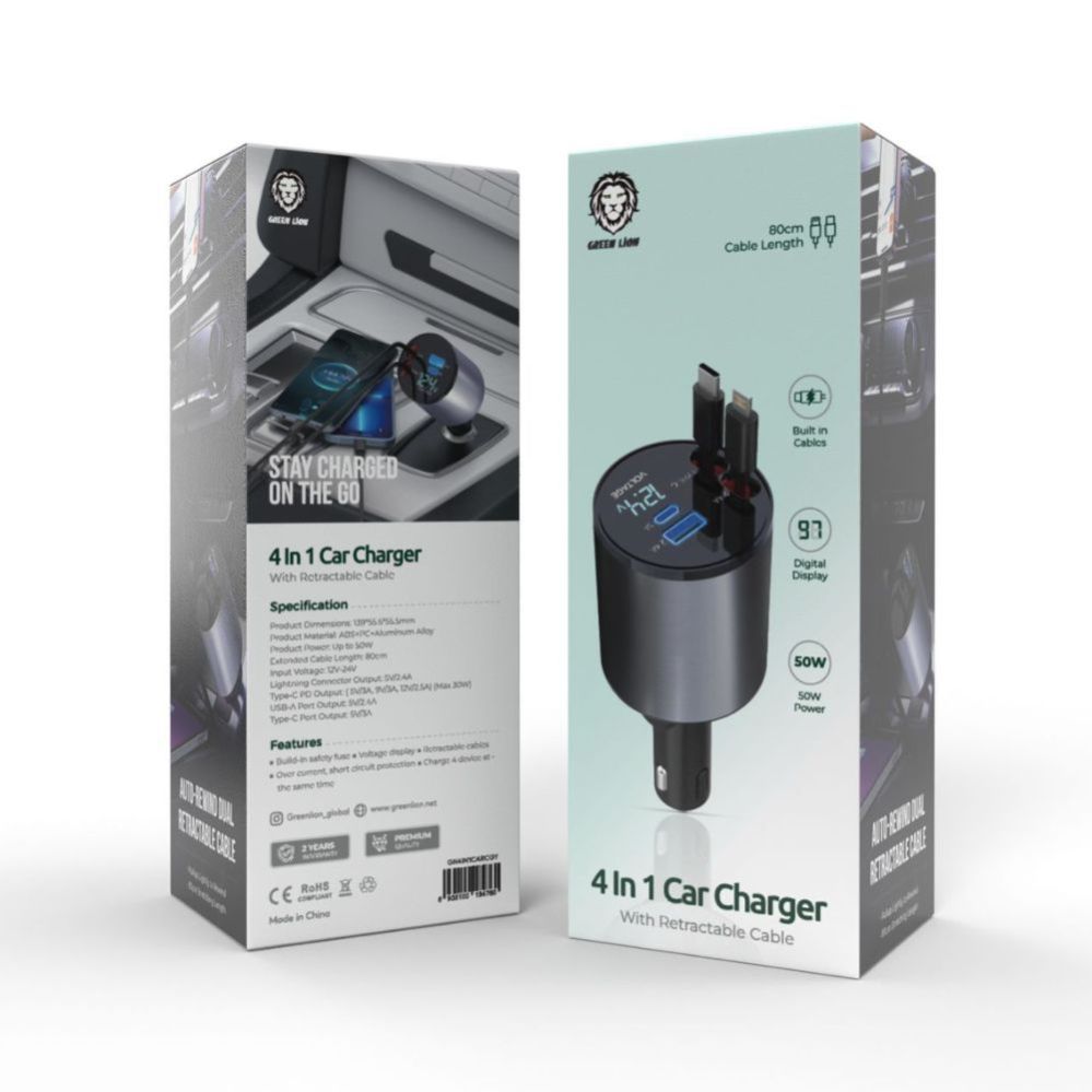 Green Lion - 4 In 1 Car Charger With Retractable Cable
