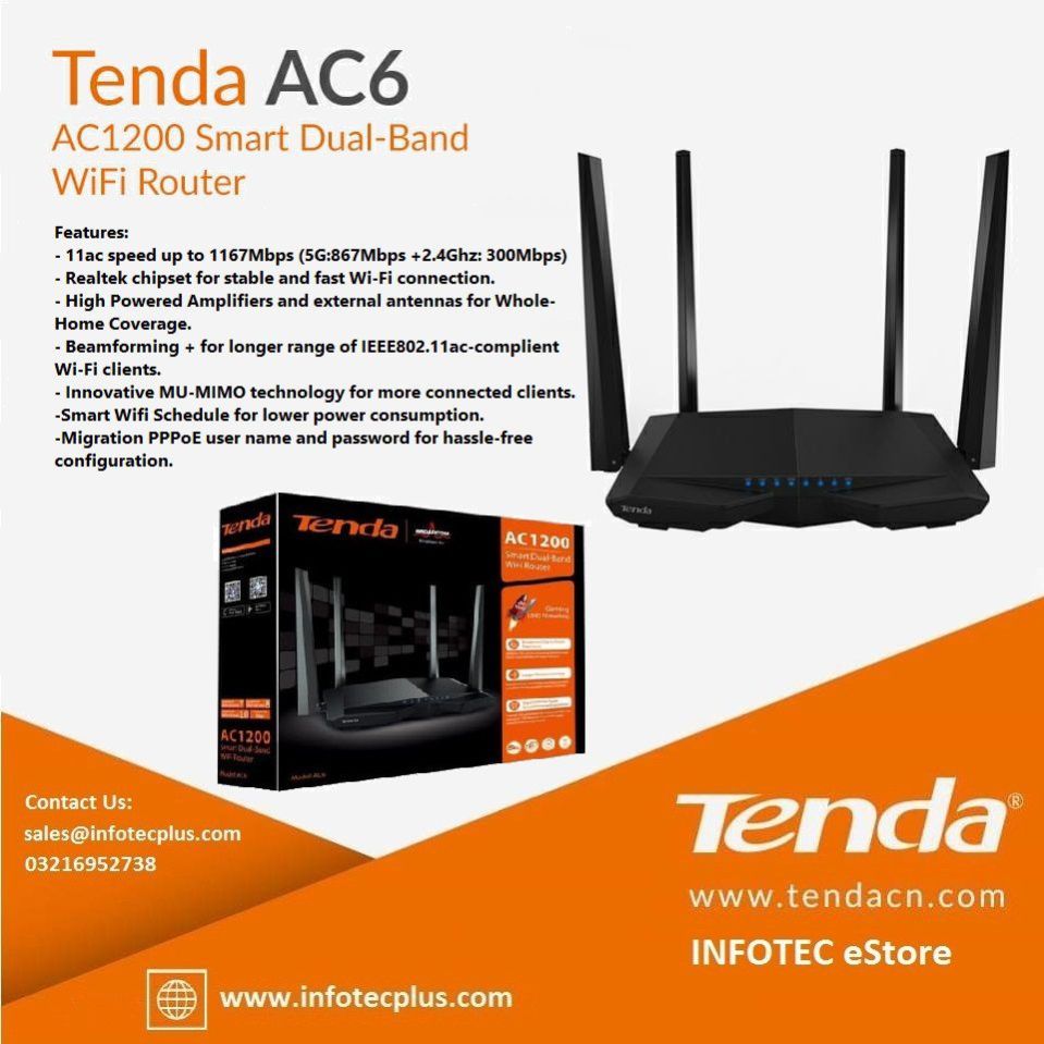 Tenda - AC6 AC1200 Smart Dual-Band Wifi Router