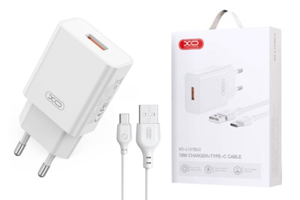 Quality fast charger for Micro USB 18W of the XO brand at an affordable price. Charger 220V XO L127 Input voltage: 110-240V / 50-60Hz / 0.5A. Output current: 5V / 3A, 9V / 2A, 12V / 1.5A. Power: 18W max. Adapter socket: USB-A port Supports fast charging BC1.2 Apple 2.4A, QC 2.0, QC 3.0, FCP, AFC. Protection against overcharging and short circuit. Material: ABS. Size: 38 x 22.2 x 80.2mm. Weight: 33g. Included: USB to Micro USB cable Compatible models: All models Samsung, Sony, Xiaomi, Huawei,Alcatel with Micro USB socket Warranty: 12m.