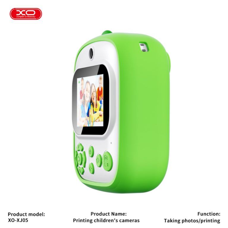 XO-XJ05 Printing Children’s Camera Features: Photos, videos (1440×1080), instant printing (57mm width). Battery: 800mAh, 1-2 hrs charge, 1,000+ photos or 4 hrs recording. Screen & Lens: 2.4″ IPS screen, 70° camera perspective. Storage: Supports up to 256GB memory card. Compact Design: 96x113x44.5mm, 280g. Accessories: Type-C cable, lanyard, silicone cover, 2 rolls printing paper. Perfect for kids to capture and print memories instantly!