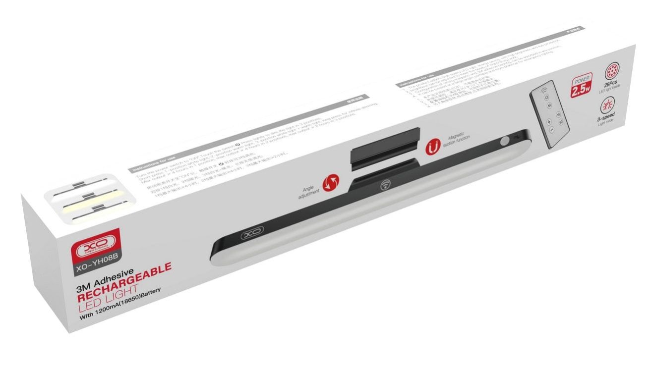 for any home or office. This multi-purpose lamp combines style and practicality, perfectly fitting into modern interiors. It can be used both as a stationary light source and as a hand-held flashlight, which makes it an indispensable assistant in everyday life. The XO YH08B Lamp provides bright lighting and creates a cozy atmosphere thanks to the combination of white and warm light. It is ideal for lighting the kitchen, bedroom, living room, wardrobe or desk. The body of the device is made of impact-resistant plastic, ensuring strength and durability. The unique design of the lamp consists of the main element – the lamp and the magnetic base, which has a curved shape for adjusting the lighting angle. Thanks to the adhesive base, the base can be easily fixed anywhere, be it a wall or a shelf, providing flexible placement options.